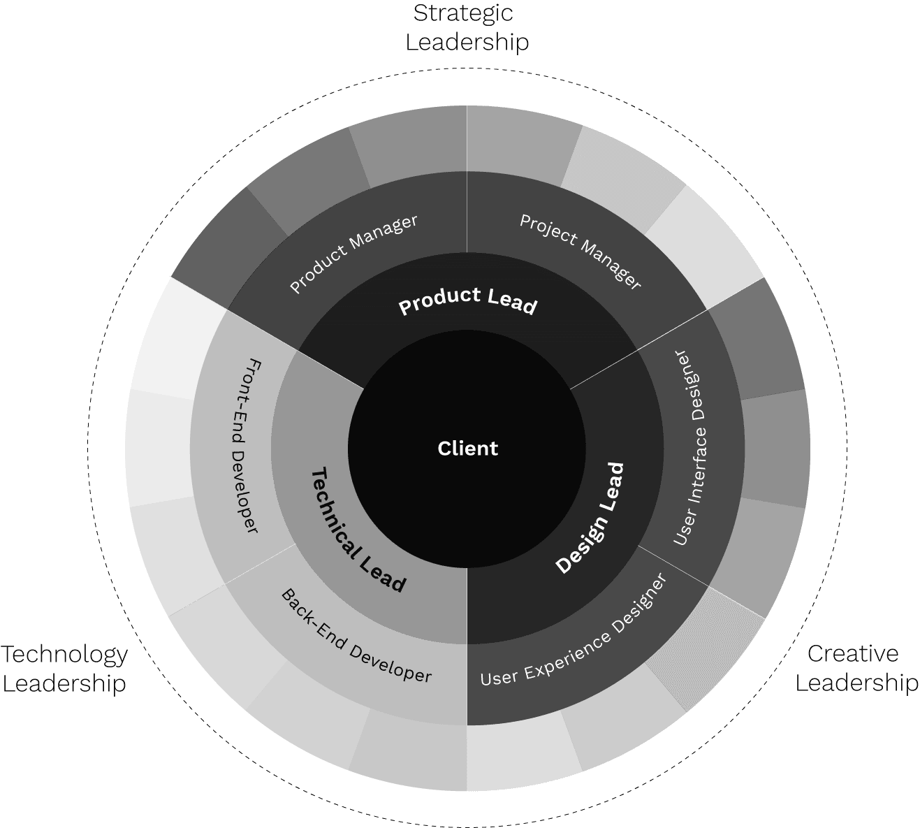 Our organizational structure is designed to give our clients access to the best talent and the most effective approaches to build software, Built on three pillars; streamlined processes, proven technologies, and talented people -- for a tailor-made solution.